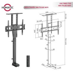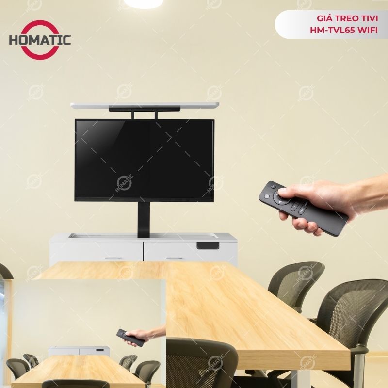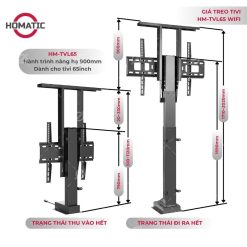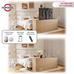 Homatic HM-TVL65 WIFI là là giá treo nâng hạ tivi tự động cho màn hình tối đa 65inch, điều khiển bằng remote, APP trên điện thoại hoặc ra lệnh bằng giọng nói vô cùng tiện lợi.